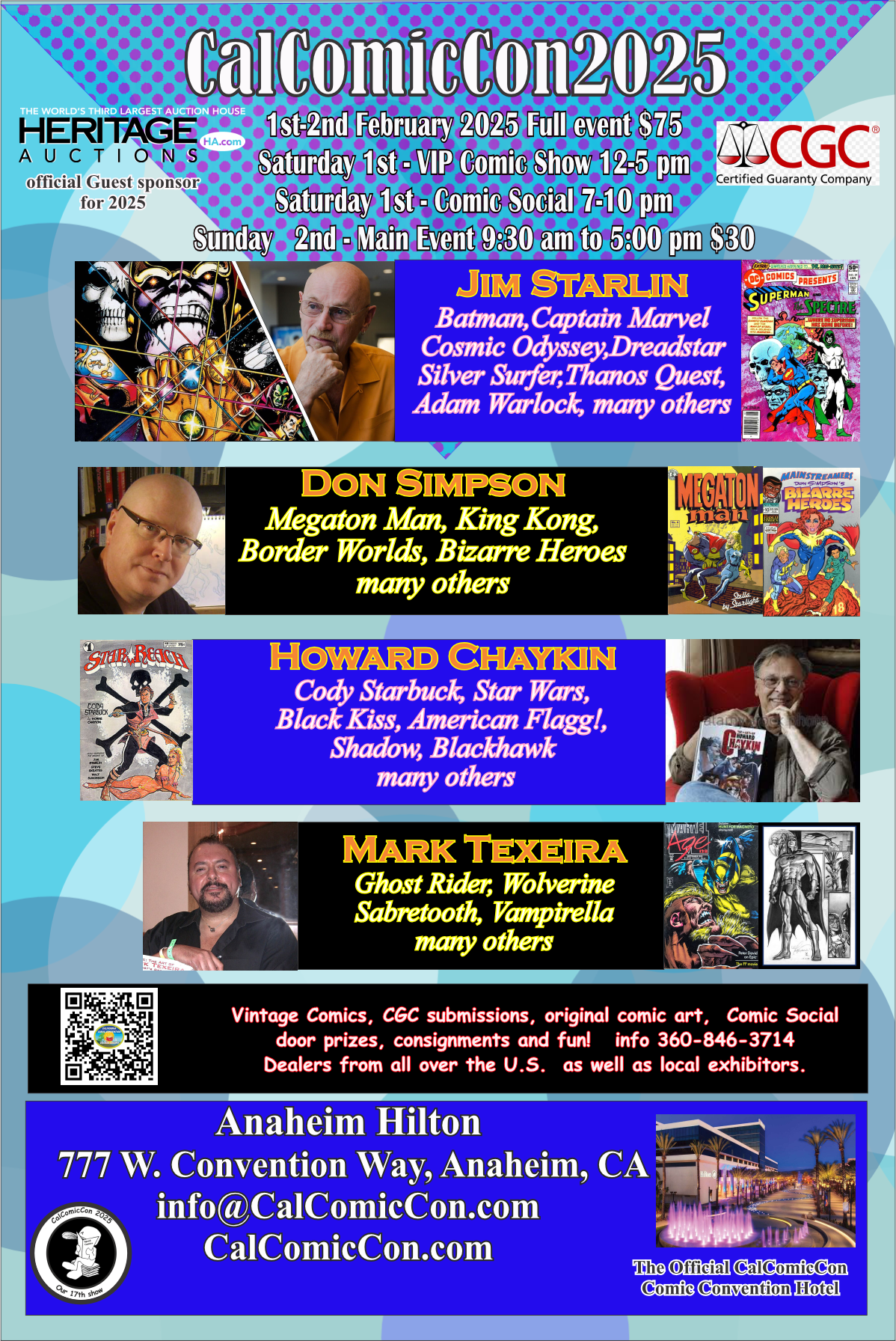 or requesting by mail at CalComicCon 2025 P.O. Box 2065, Orange , CA 92859.